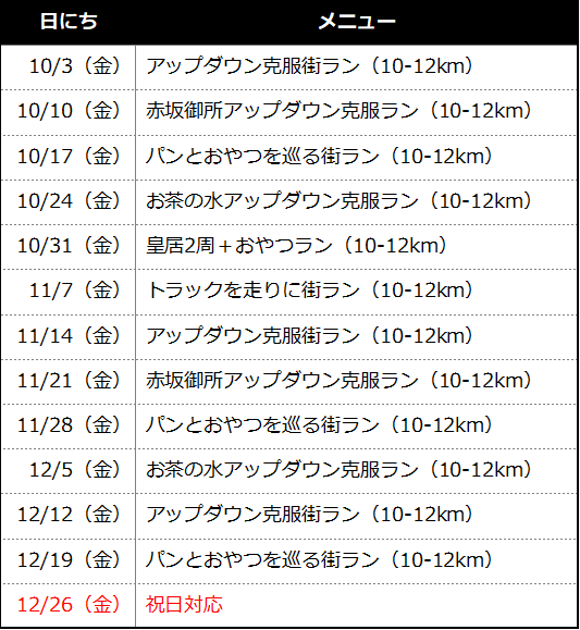 ▶対象:初心者、ランニングを始めたばかりの方、ブランクのある方、レースにこれから出てみたい方、ハーフマラソンやフルマラソン完走目標〜5時間30分、5時間目標の方など(年齢制限はありません)