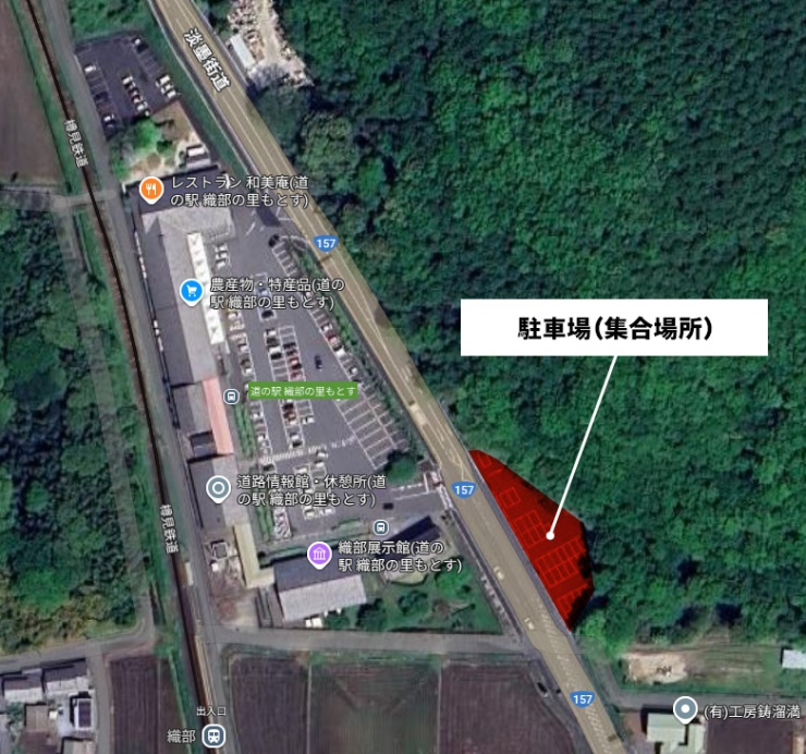 ※集合場所の国道157号をはさんでの駐車場は、交通量もあるため横断の際には注意してください。