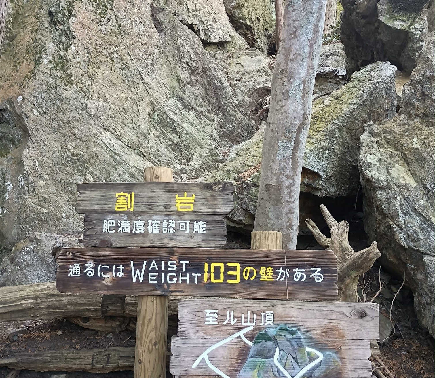途中には割岩という肥満度を測れる岩の隙間があり、スリル満点です。