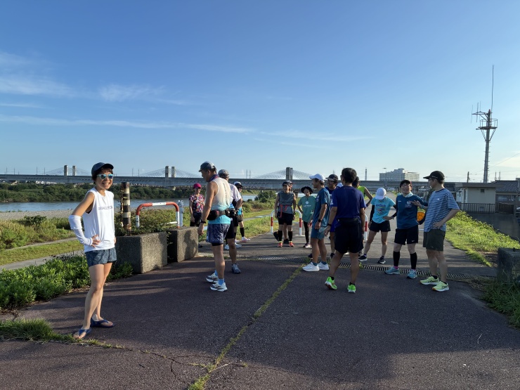 コース:片道約5kmのフラットな河川敷コース(往復で10km)。