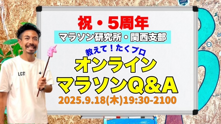 【オンライン】9/18(金)教えて!たくプロ マラソンQ&A会(祝・マラソン研究所5周年目) 受付終了