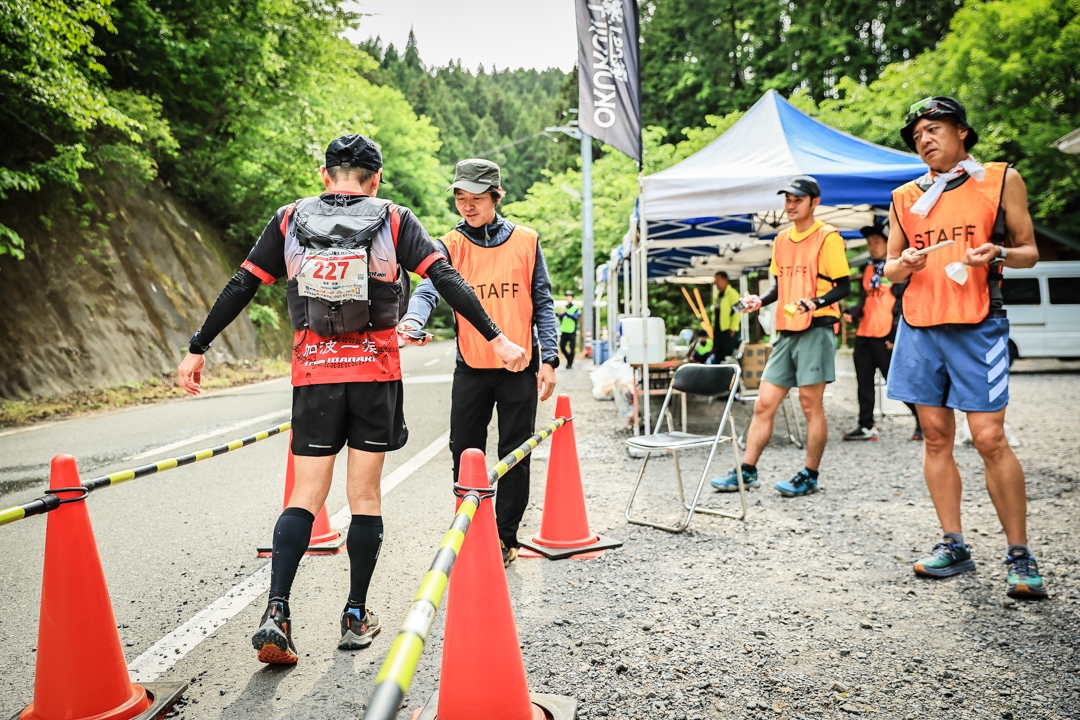 エイド周辺のコース上での選手誘導や、エイドでの飲食配給など。
