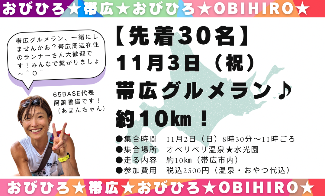 【先着35名】出張BASE★帯広グルメラン 約10キロ ※前日懇親会有り! 受付終了