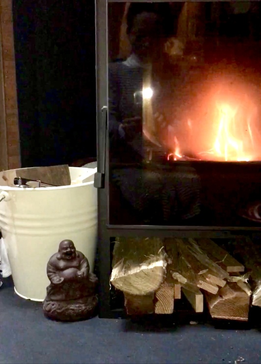 夜は薪ストーブで調理した、体も心もポカポカになる