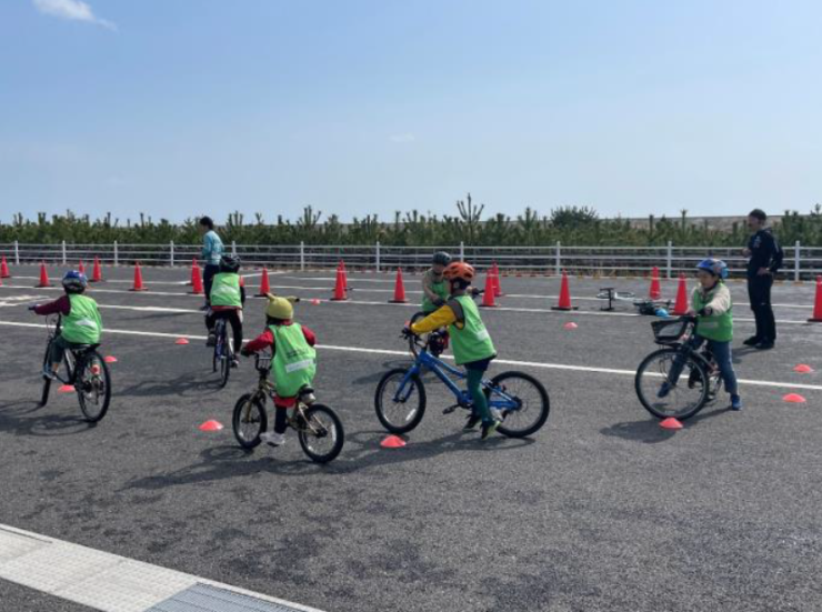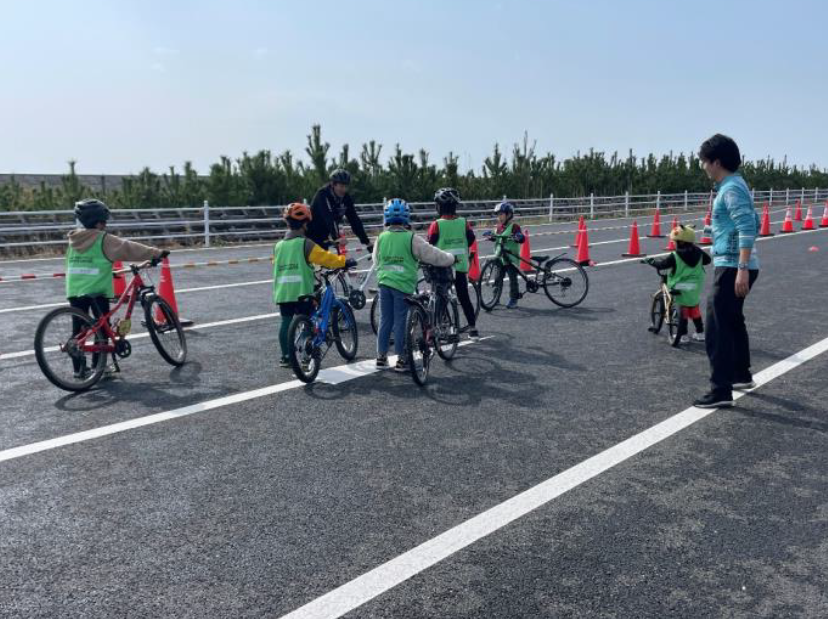 (1) 自転車の構造の説明、乗車姿勢やバランスなど自転車に乗車し、講師(有識者)により実技レクチャーする。