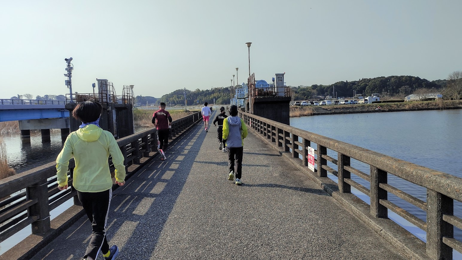 - 準備体操後、状況に応じた距離のラン(手賀沼の周遊コースを走ります)