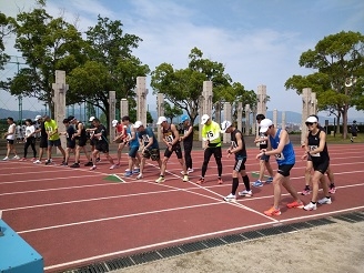 同じブロックのランナーはスタートの時、横に並んでスタートできます