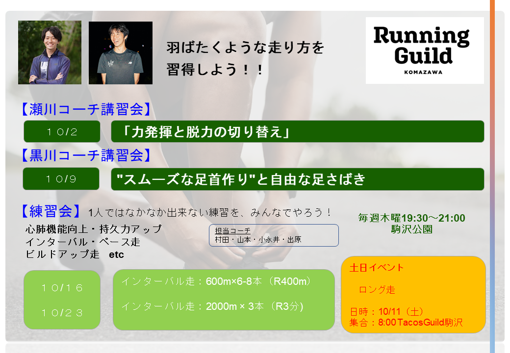 【10月開催】「ランニングギルド駒沢」~楽に羽ばたくように走る「走り方改革」をサポート~ 受付終了