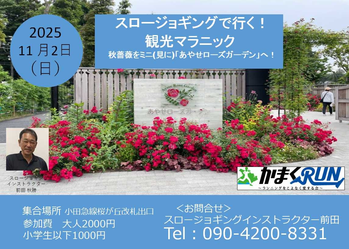 光綾公園は、綾瀬市最初の都市公園で、市のシンボル公園として幅広い世代の方々に利用されてきました。平成元年から順次再整備をおこなっています。令和7年5月には、バラ園が「あやせローズガーデン」としてリニューアルオープンしました。バラの見ごろは5月中旬と10月下旬です。あやせローズガーデンを目標にスロージョギングで進みます。急な上り坂はウォーキングで平坦な道はスロージョギンで進みます。