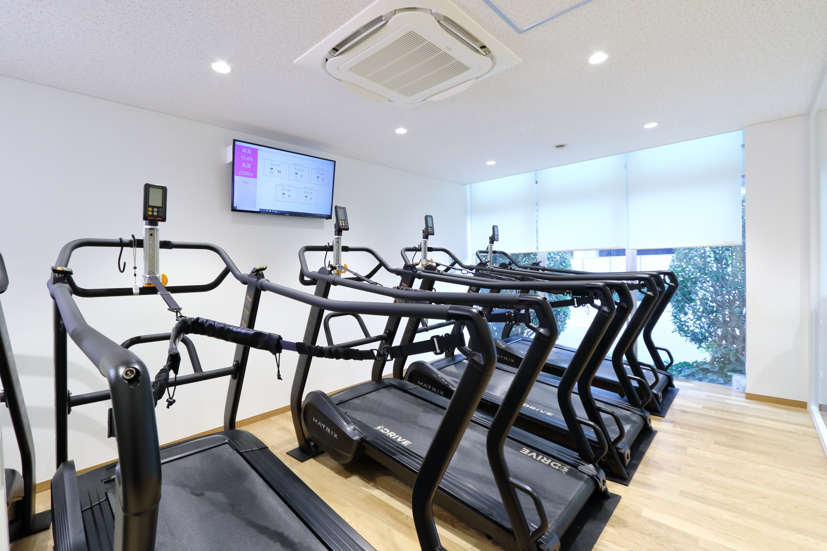 さらに!低酸素ジムAORにあるMATRIX社の自走式トレッドミル《S-ドライブパワー》を使って、 補強で作った力を“登り動作”に繋げるトレーニングを実践!