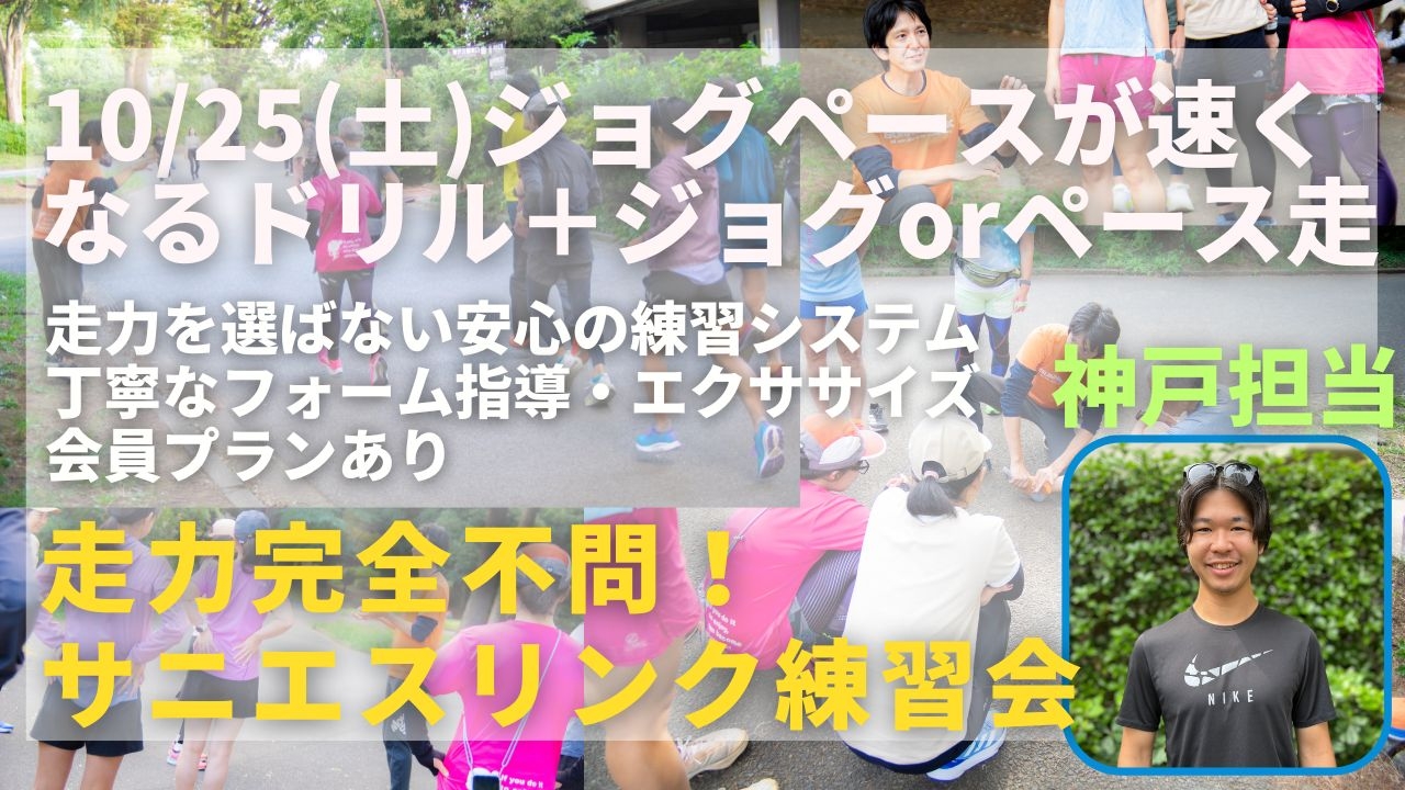 関東ですでに実績のある走力完全不問のランニングクラブ、サニエスリンクです。安心の練習システム、身体の仕組みをうまく使った専門的なストレッチやエクササイズ、丁寧なフォーム指導に定評があります。今まで関東エリアをメインに練習会を運営していましたが、2025年9月より、神戸市みなとのもり公園でも練習会を新規スタートしました!ぜひご参加ください!