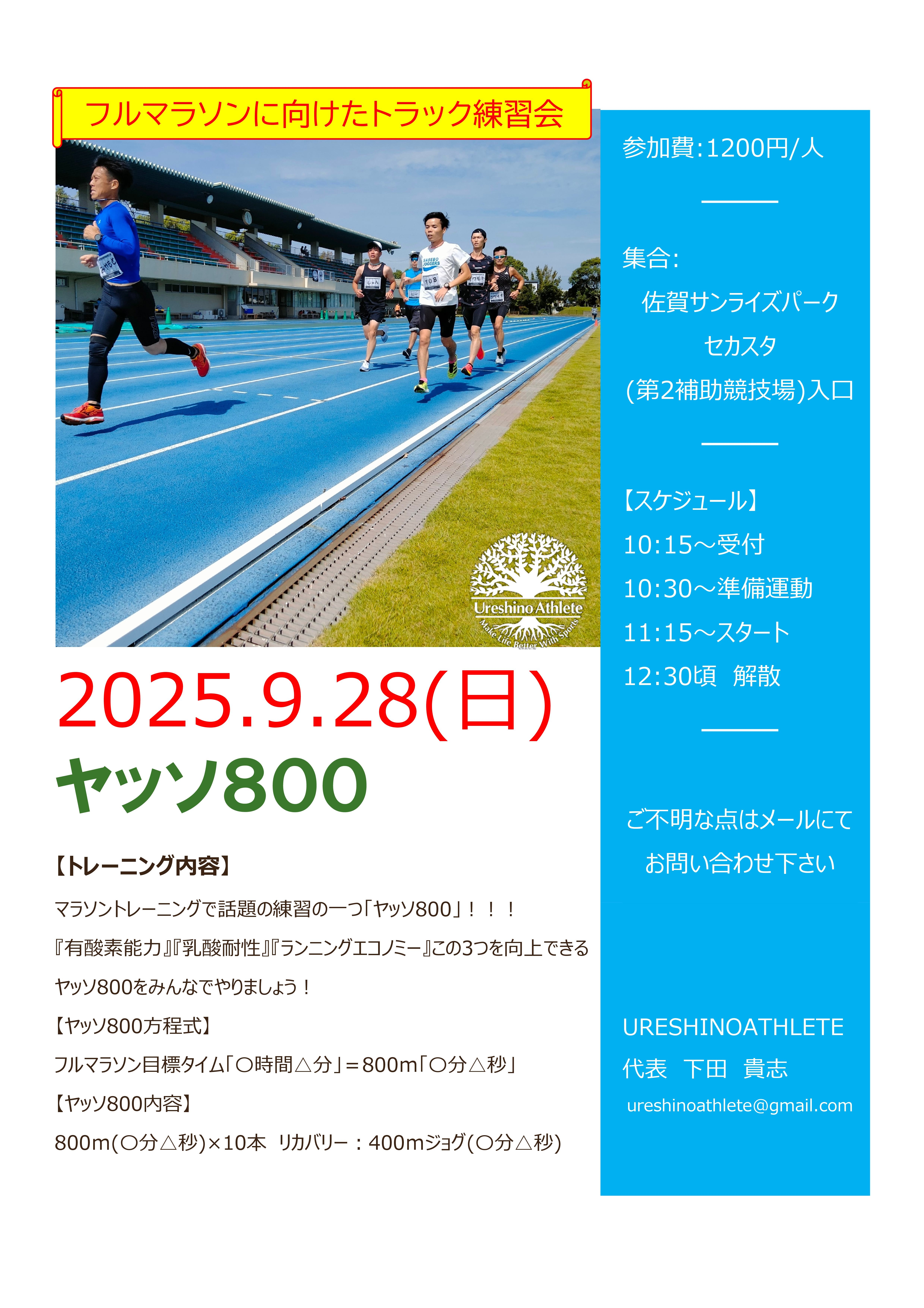 【フルマラソンに向けたトラック練習会】ヤッソ800 受付終了