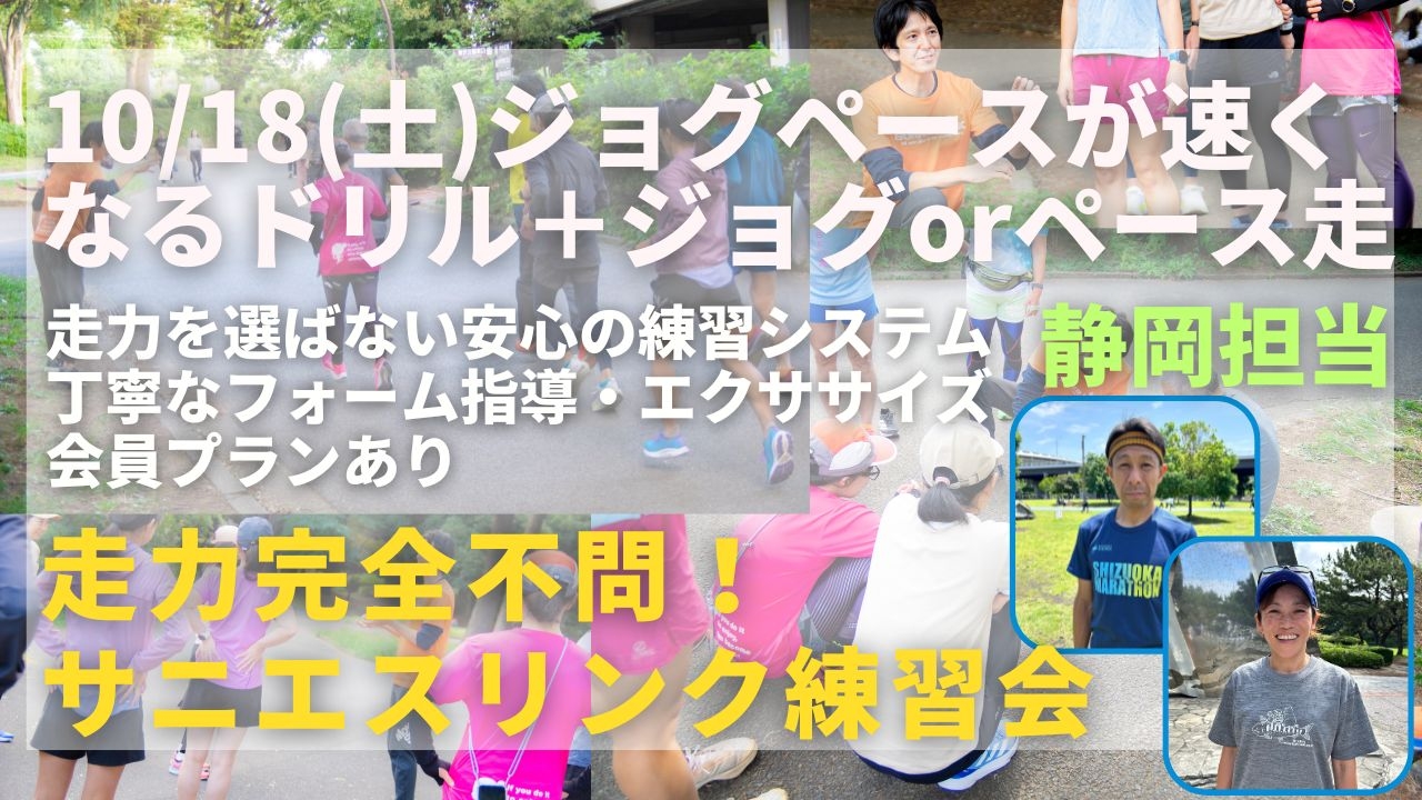 関東ですでに実績のある走力完全不問のランニングクラブ、サニエスリンクです。安心の練習システム、身体の仕組みをうまく使った専門的なストレッチやエクササイズ、丁寧なフォーム指導に定評があります。今まで関東エリアをメインに練習会を運営していましたが、2025年9月より、静岡市草薙陸上競技場外周でも練習会を新規スタートしました!ぜひご参加ください!