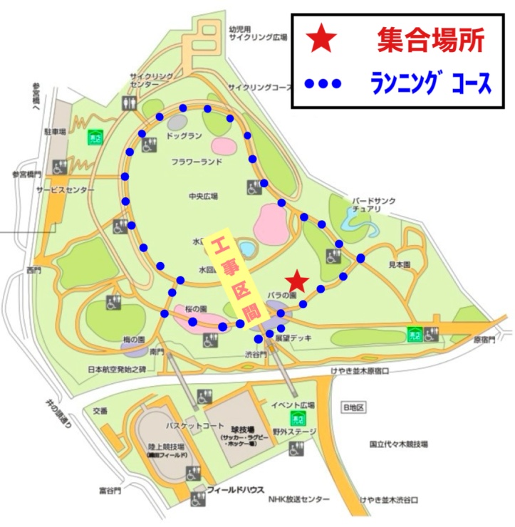 ※代々木公園内が長期的に工事中の為、コースが変更になる場合がありますのでご了承下さい。