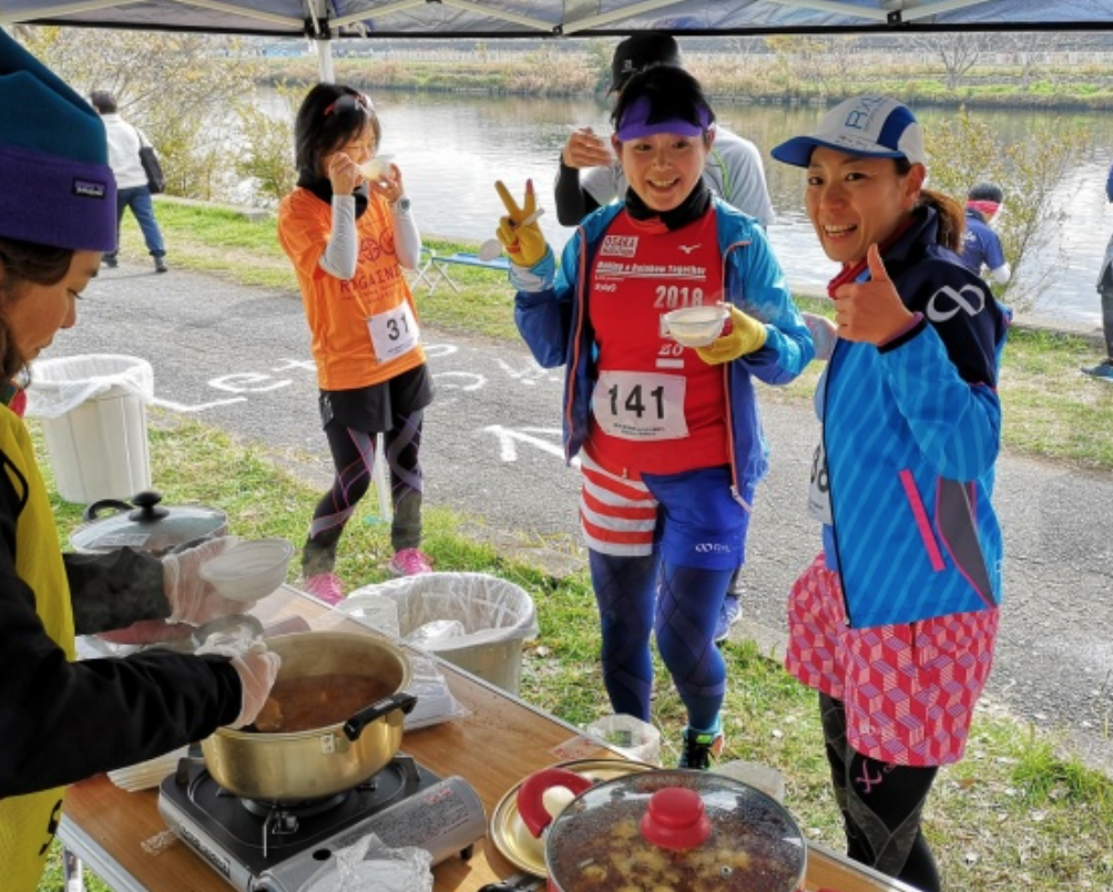 今大会はエコの観点から、各所のエイドでの紙コップを用意せず、参加者ランナーの方々にマイカップをご持参頂く事にいたしました。