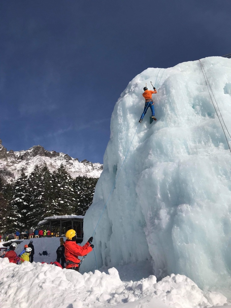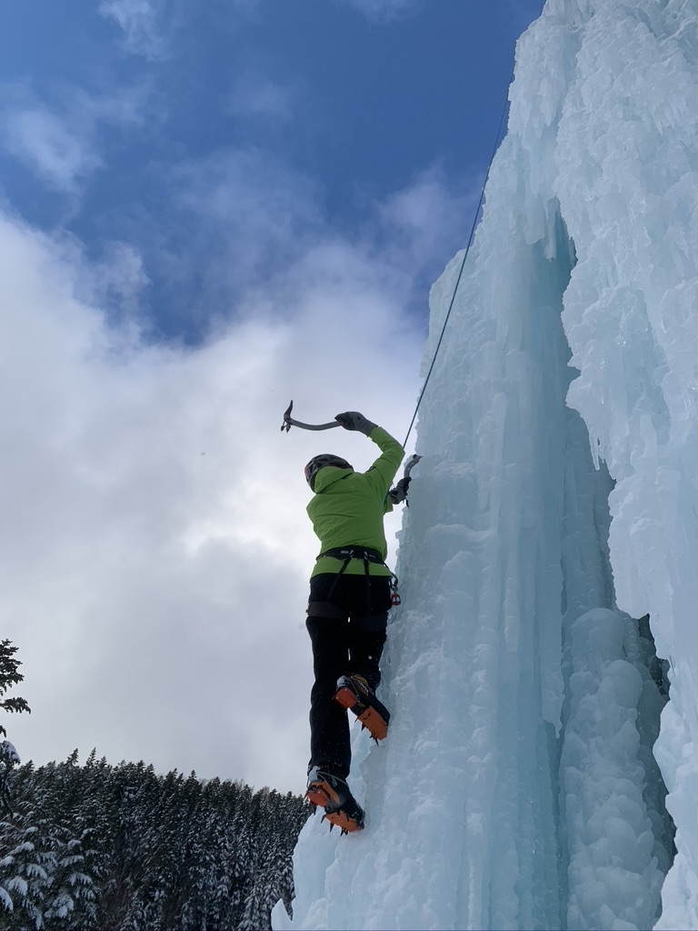 ビギナー〜初級者向けに行う、人工氷瀑でのアイスクライミング講習です。アイスクライミングとはどういったものかを体験していただき、氷を登るということの性質を理解していただきます。