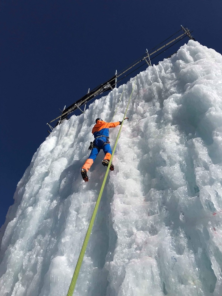 ビギナー〜初級者向けに行う、人工氷瀑でのアイスクライミング講習です。アイスクライミングとはどういったものかを体験していただき、氷を登るということの性質を理解していただきます。
