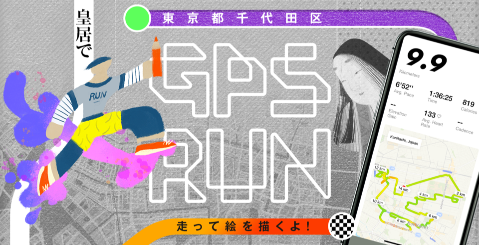 東京都国立市でランニングアートを描き続け、全部で300コースになりました。そんな、スポーツと遊びとアートが融合したGPSアートたくさんの方に楽しんでいただこうと、国立駅近辺をスタート地点にジョギングしています。10km前後の短いコースを中心に、国立市、立川市の地域が中心。1キロ7~8分程のスローペースで初心者にも安心です。干支ラン、賀正ラン、Xmasラン、ハロウィンRUN、などのイベント開催予定です。