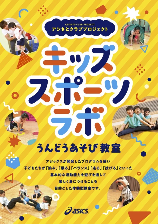 アシックスが開発したプログラムを使い、子どもたちが「跳ぶ」「蹴る」「バランス」「走る」「投げる」といった基本的な運動能力を、遊びを通して楽しく身につけることを目的とした体験型教室です。運動が苦手なお子さまも安心して楽しめる内容となっております。お友達も誘ってお気軽にご参加ください!