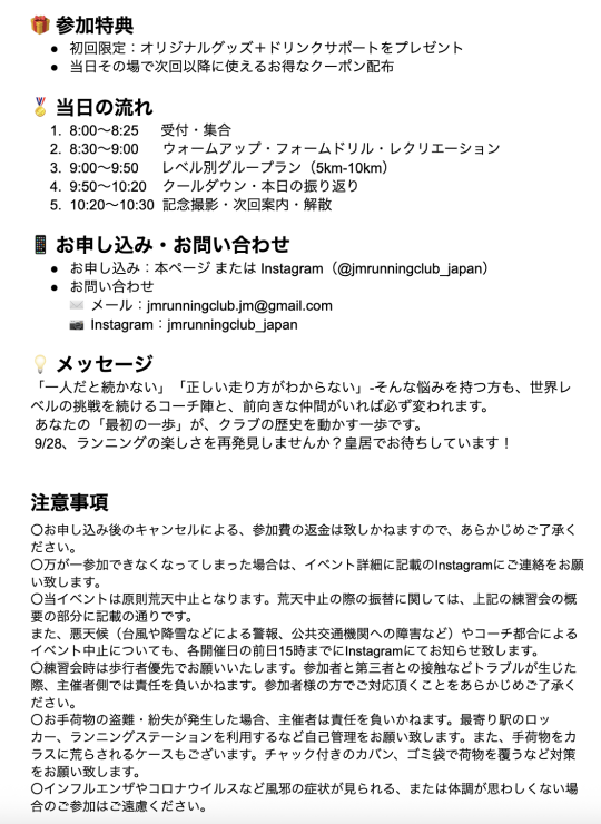 jmrunningclub.jm@gmail.com、090-4962-3140 - イベントID