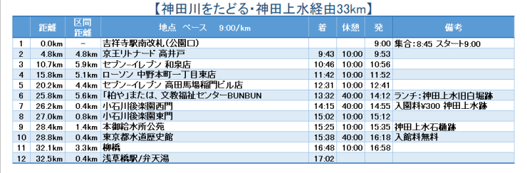 神田川の源流・井之頭池から河口・隅田川までの川筋を辿るマラニックです。