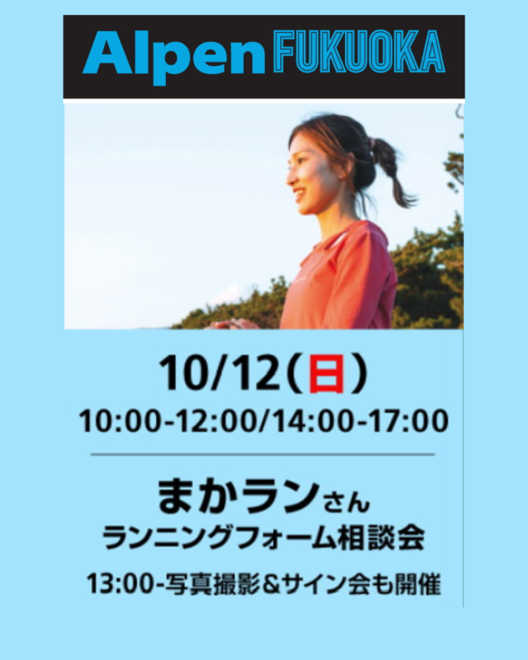 Alpen FUKUOKAにてまかランが皆さんのランニングフォームを診断します!