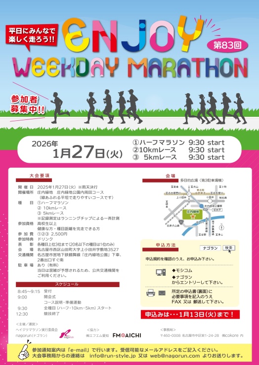 休日の予定が合わない方にぴったり!毎月平日に開催中!リピート率が高く、毎回たくさんのランナーにご参加いただいています♪