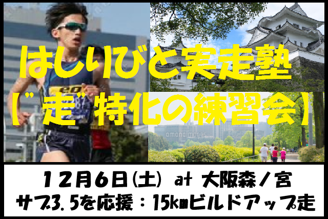 - 12/6【森ノ宮/土曜AM/練習】はしりびと実走塾『”サブ3.5を応援” 15kmビルドアップ走』 :