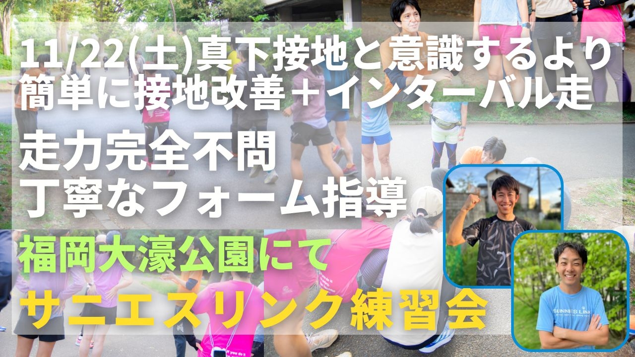 関東ですでに実績のある走力完全不問のランニングクラブ、サニエスリンクです。安心の練習システム、身体の仕組みをうまく使った専門的なストレッチやエクササイズ、丁寧なフォーム指導に定評があります。今まで関東エリアをメインに練習会を運営していましたが、2025年9月より、福岡市大濠公園でも練習会を新規スタートしました!ぜひご参加ください!