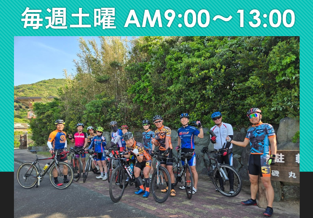 毎週土曜 AM9時~13時に開催。メニュー(コース)によって異なりますが、50km~80km程度のロードバイクセッションです。