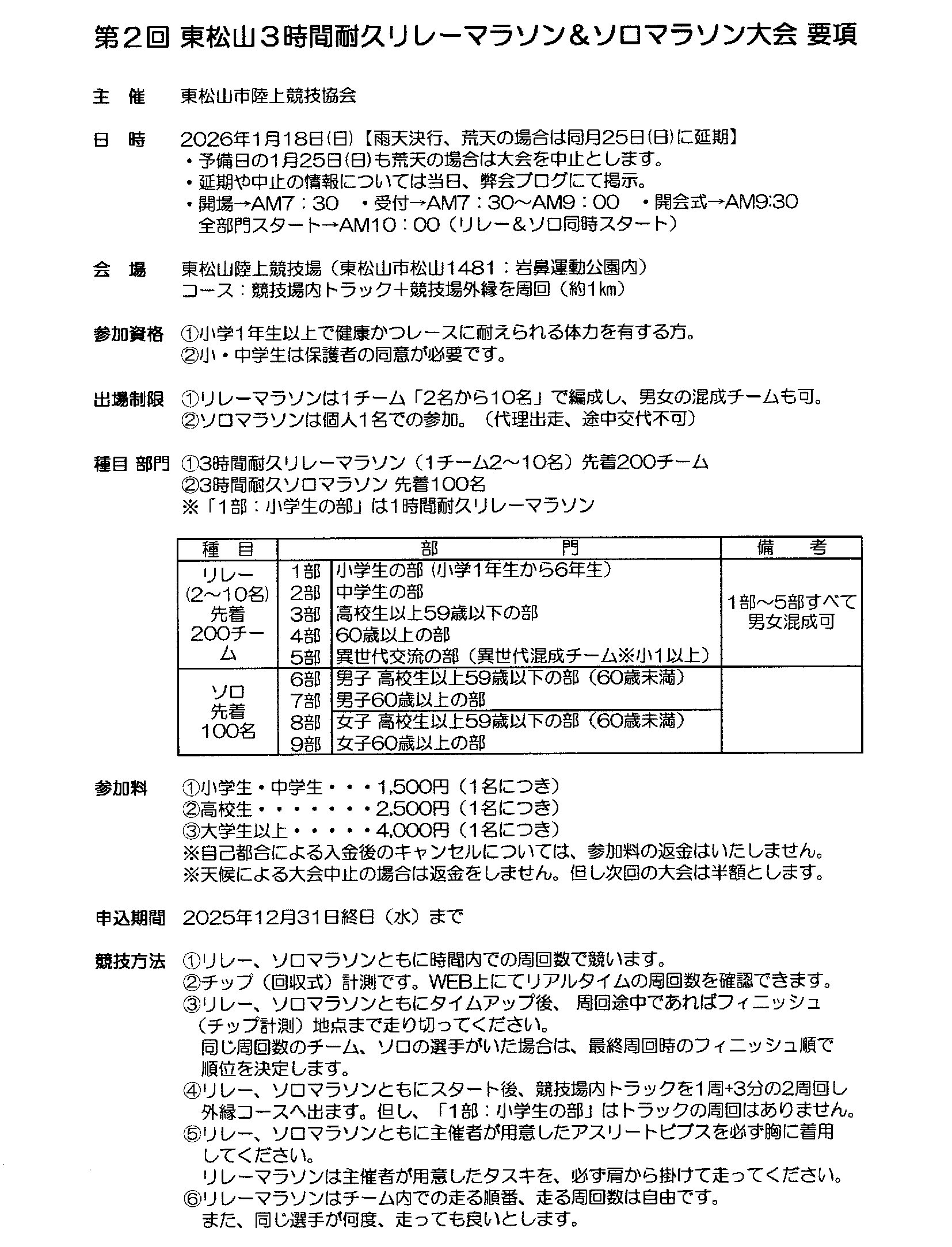 - 3時間耐久リレー&ソロマラソン大会 受付時間
