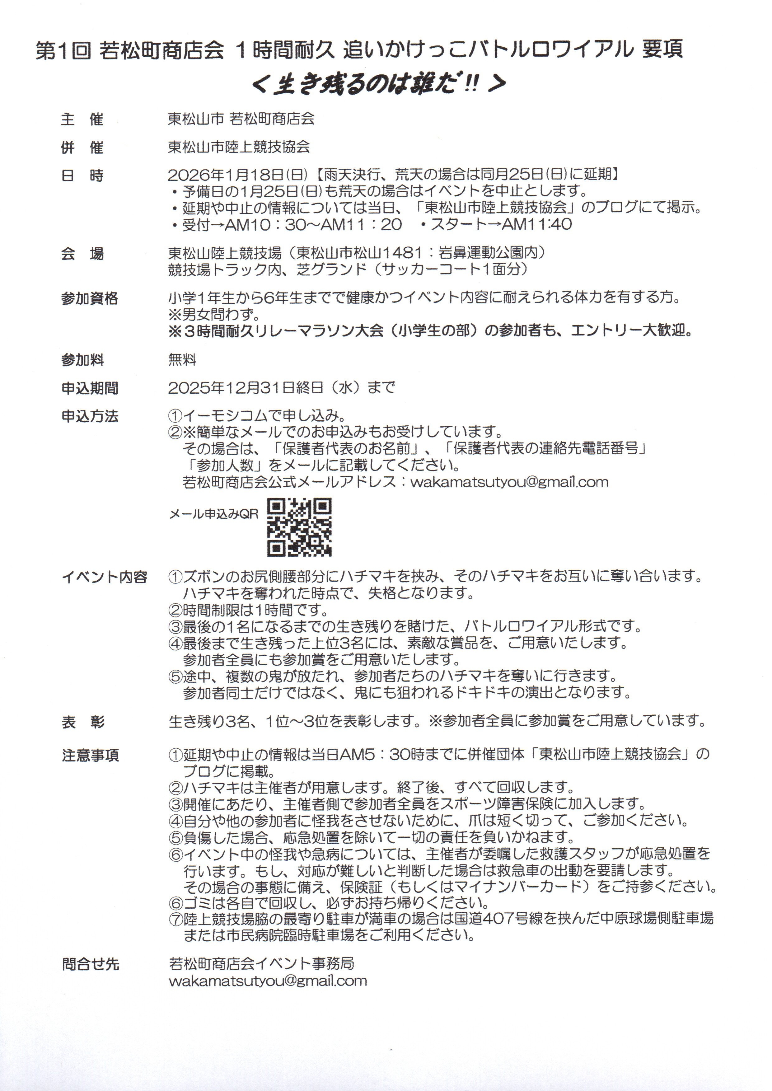 - 若松町商店会主催 1時間耐久追いかけっこバトルロワイアル 受付時間