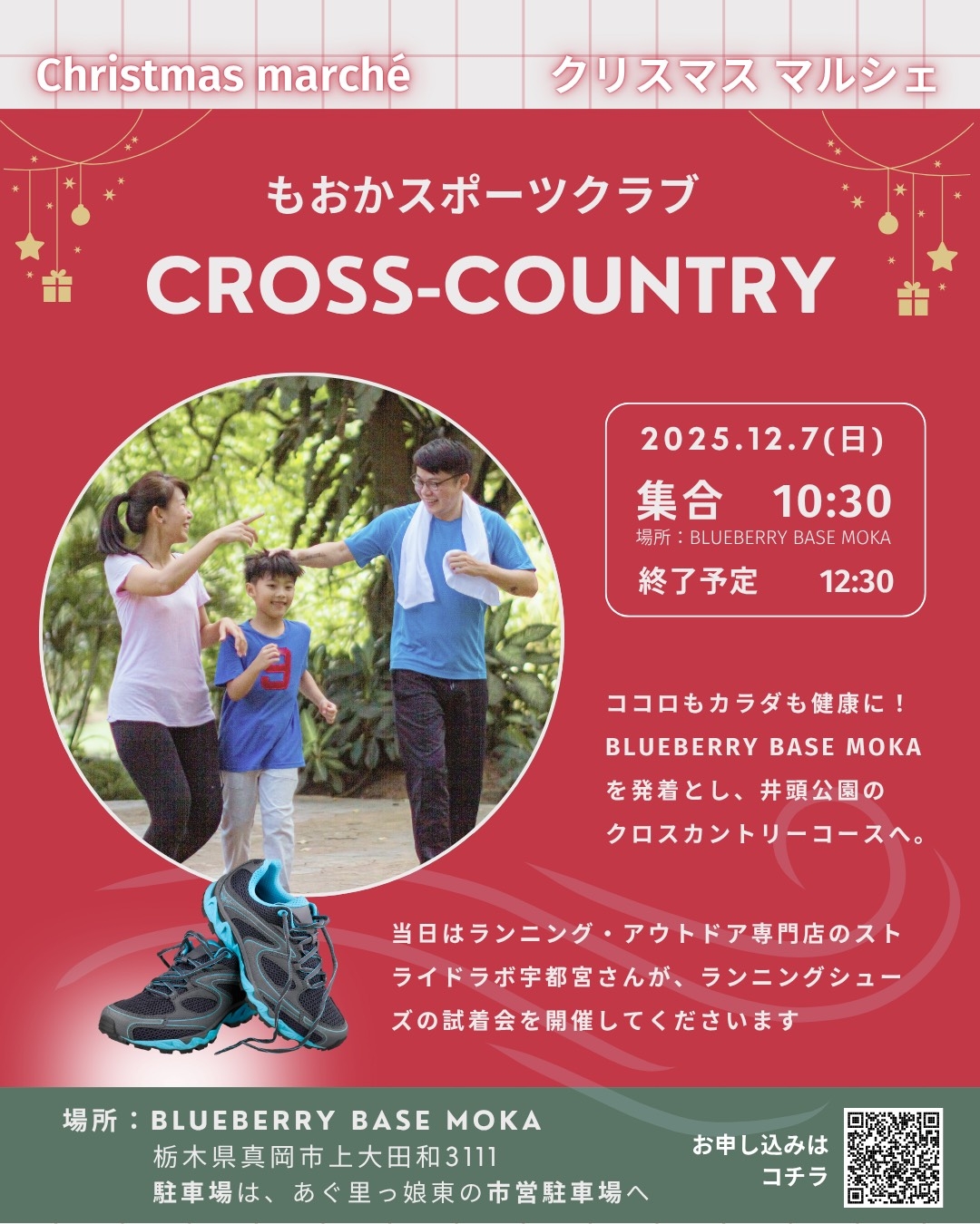 今回は、「STRIDE LAB 宇都宮店」様のランニングシューズ試し履き会と「BLUEBERRY BASE MOKA」様の「クリスマスマルシェ」とのコラボ企画です!