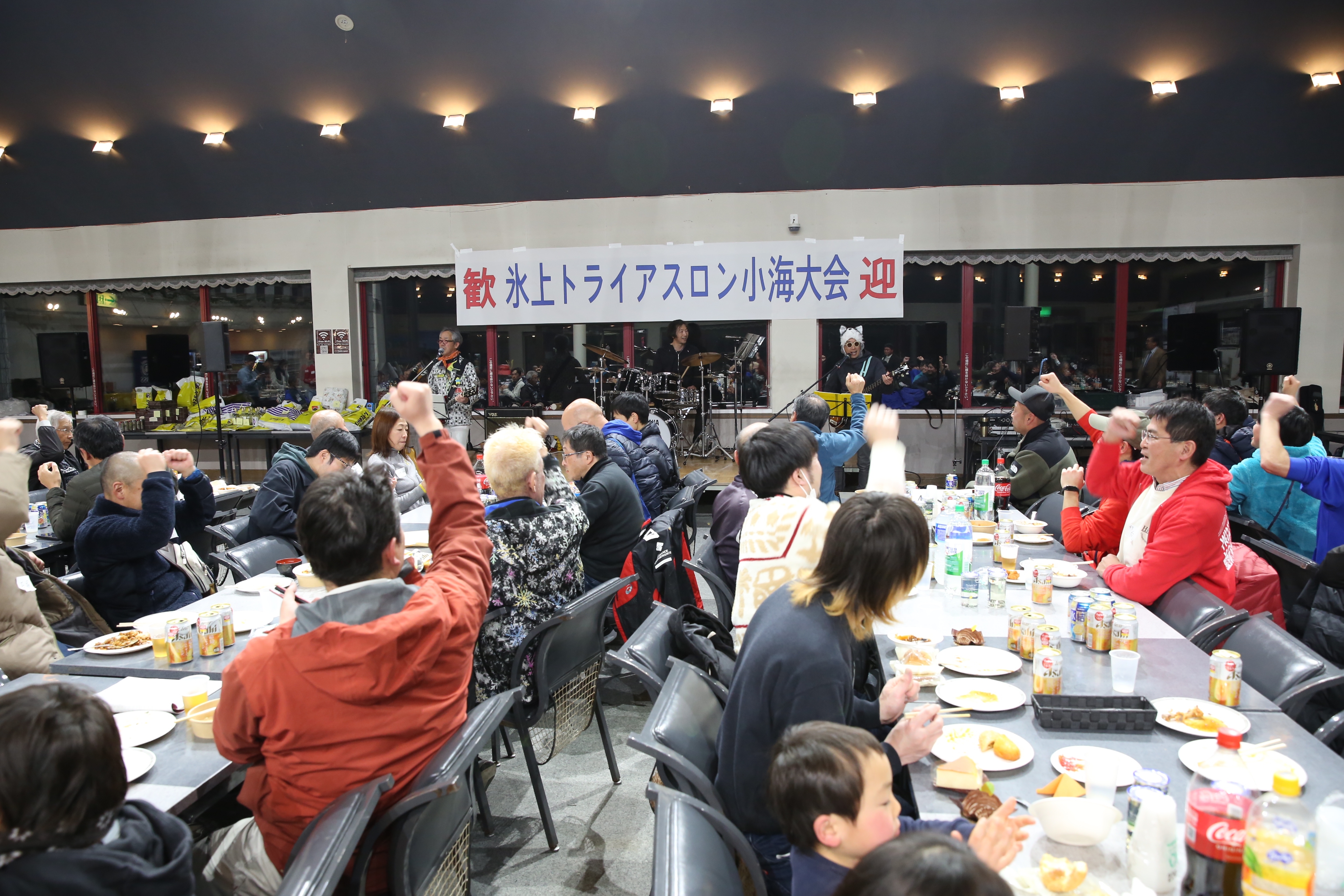 - 8:00(スラロームスキー3km、ランニング16km、スケート10km)