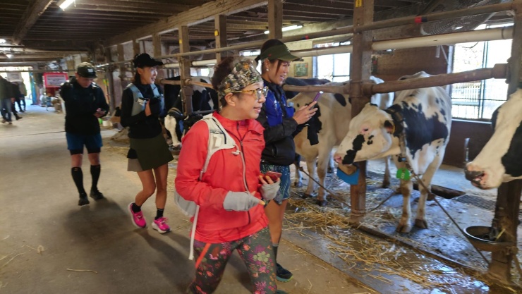コース中間点では牧場を通過します。皆さんで生搾りジェラートを食べてのんびりしましょう!