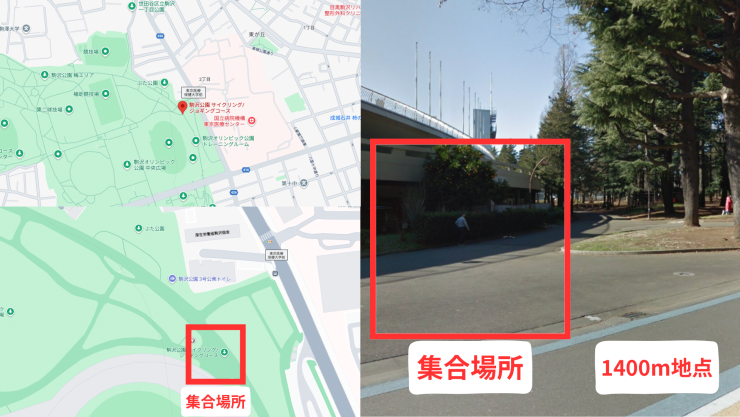 【集合場所地図】駒沢公園周回コース1400m地点内側 広場