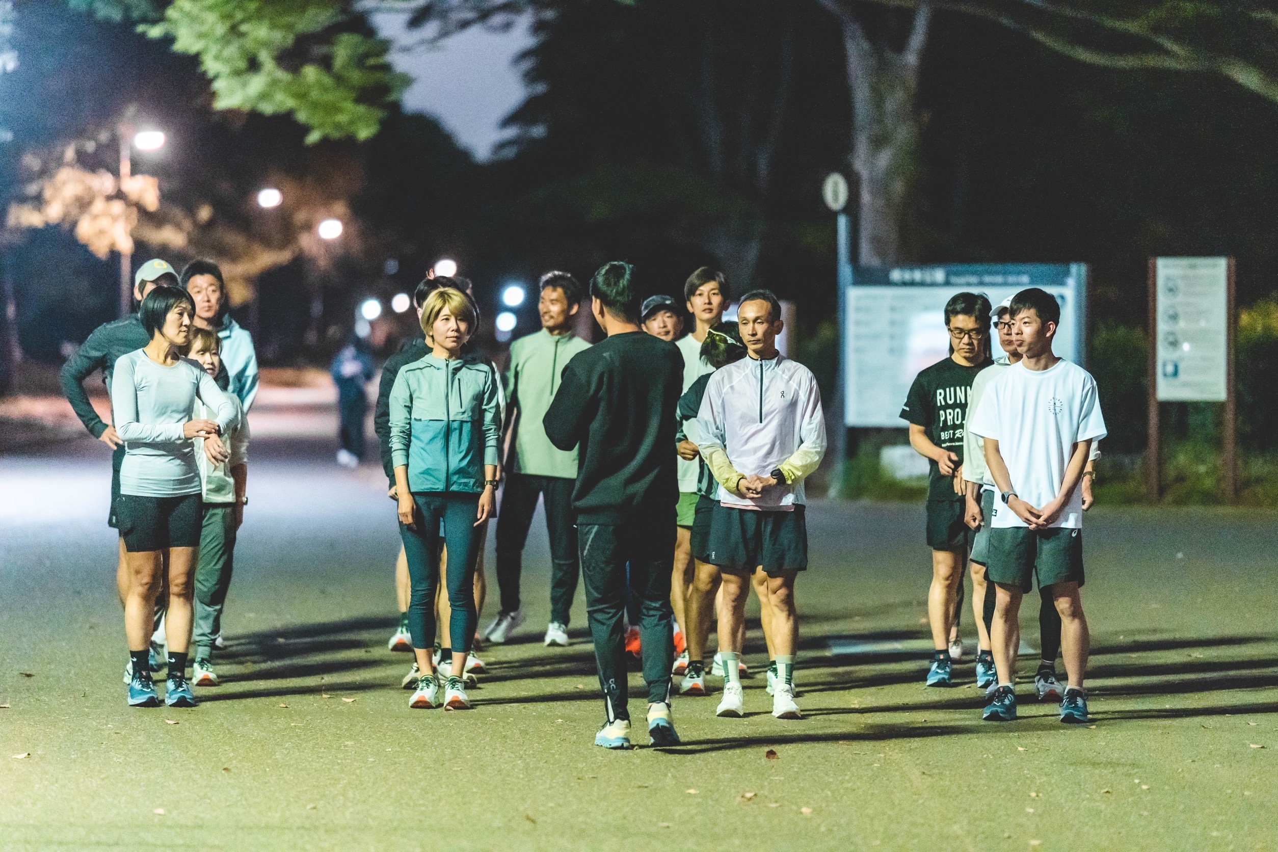 メイン練習は、On アスリートストラテジーアドバイザーを務める横田真人も参加し駒沢公園の2.1km周回コースを10周する合計21kmのペース走。いくつかの設定タイムを設けて、各チームをUDCのペースメーカーが正確なリズムで参加者の走りをアシスト!