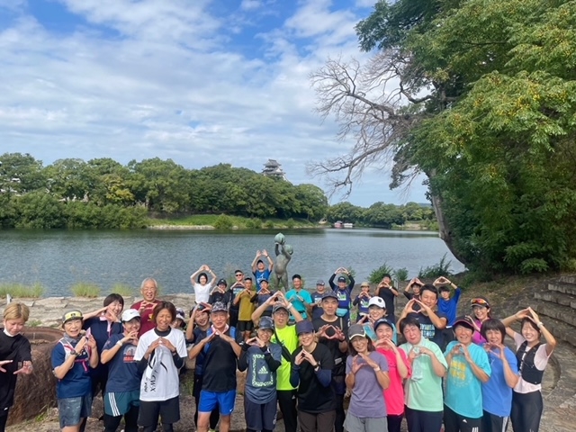RUNは天満屋から岡山城周辺の5~6km(1km7分程度)を福士さんと一緒にJOG、途中で記念撮影も行います。