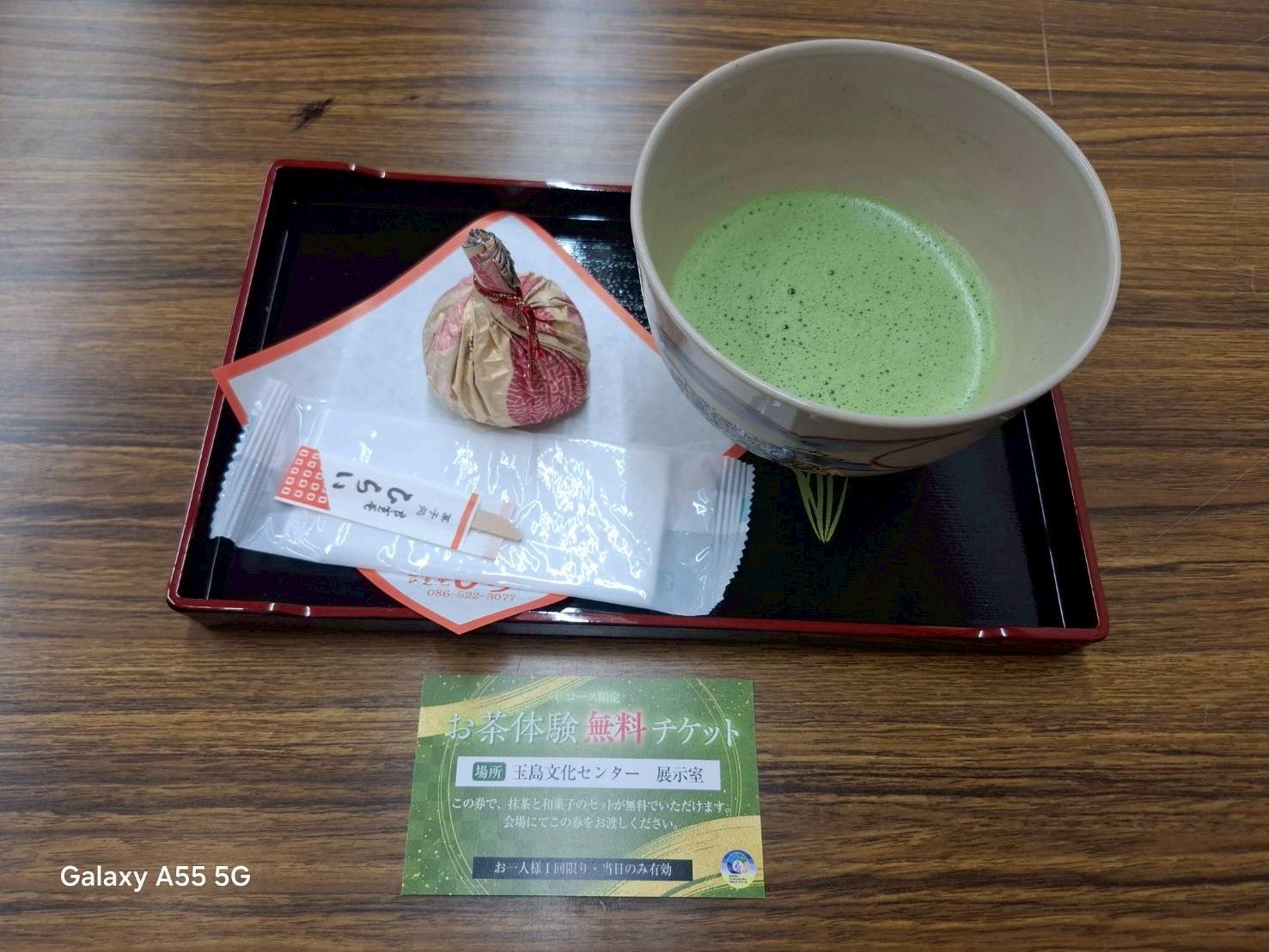 当日は、コース途中にある玉島文化センターにて抹茶の振る舞いがございます。玉島在中の茶道家の皆さんがその場でたててくださった本格的な抹茶と、地元の和菓子屋さんが作った和菓子を体験いただけます。(無料)