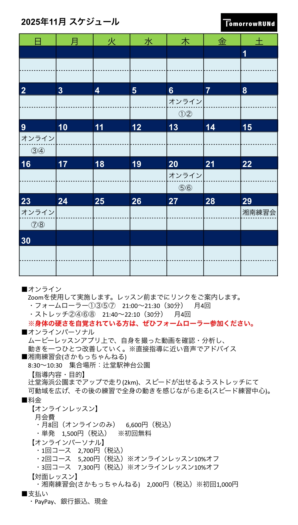 【2025年11月】TomorrowRUNd オンラインレッスン 受付終了