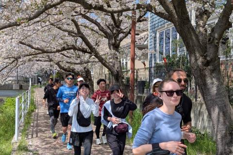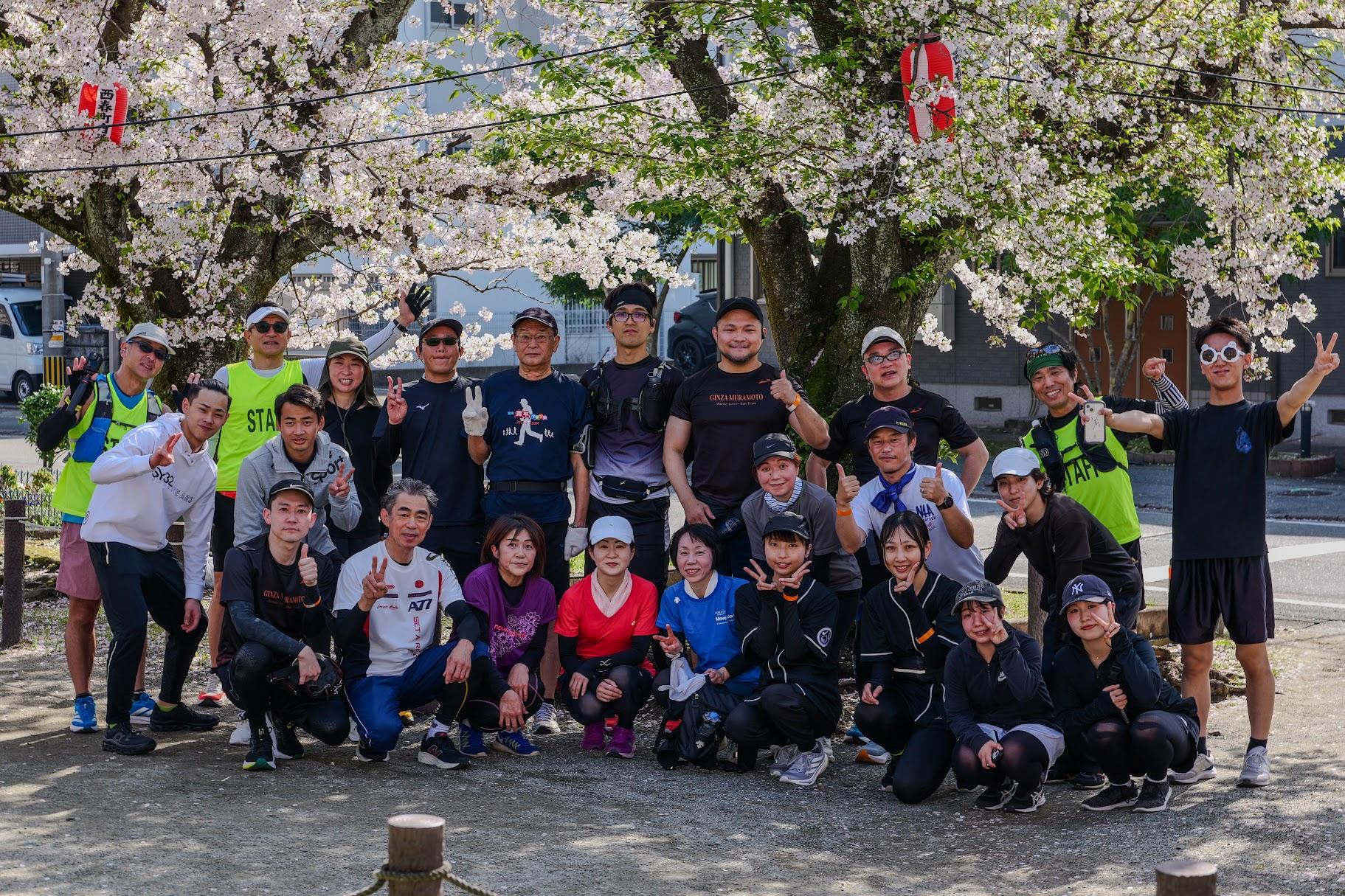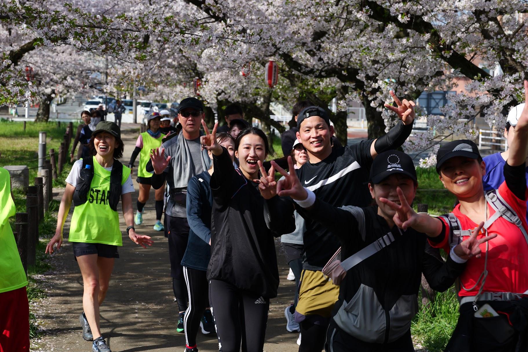 第1回大会!大橋駅発、走力に応じた組み分けを行い、桜満開の街並み・桜並木スポットを巡り、花見スポットで休憩・給水しながら、特別エイド「梅ヶ枝餅」で元気を補給し、ゴールの大宰府市唯一の天然温泉「みかさの湯」(入浴券付き)を目指す22km。頼れる先導/最後尾ガイドランナーを配置、リタイヤ者にはサポートカーを用意しています。万全の態勢であなたの完走をサポートします!初心者でも安心して参加できます。