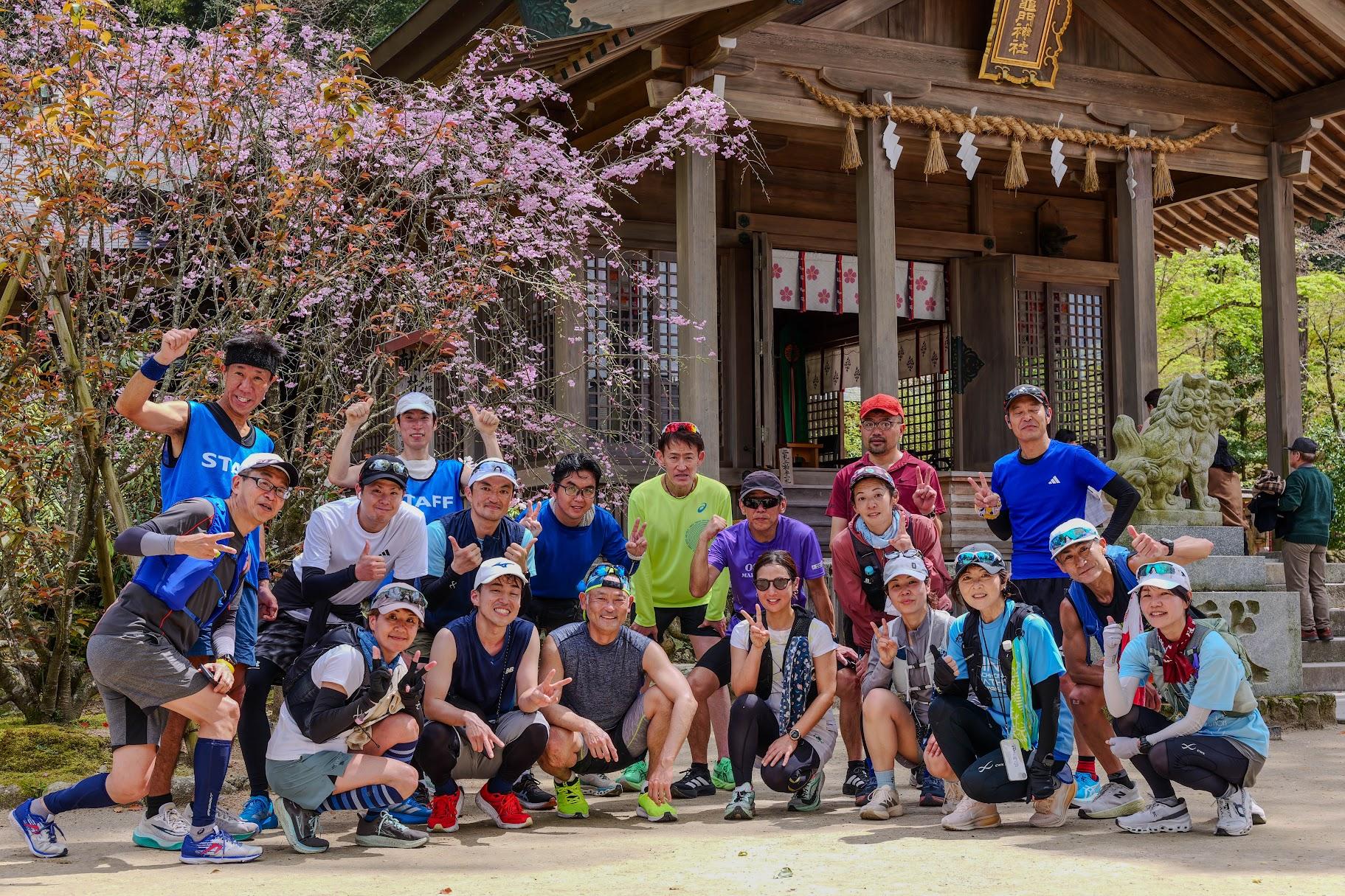 コース終盤の正念場、宝満宮竈門神社への激坂。息を切らしながら一歩ずつ登りきった先に待っていたのは、清らかな空気に包まれた境内の絶景でした。あの達成感と、皆様と一緒に見た景色は、何にも代えがたい「だざいふ桜マラニック」一番のハイライトです。