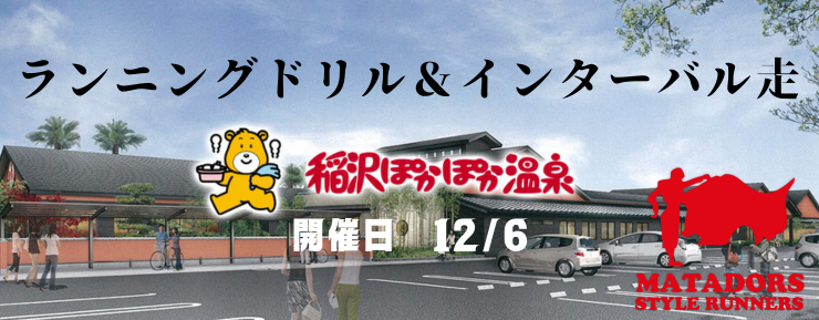 ■ ランニングドリル&インターバル走@稲沢ぽかぽか温泉(温泉、ランチ付)