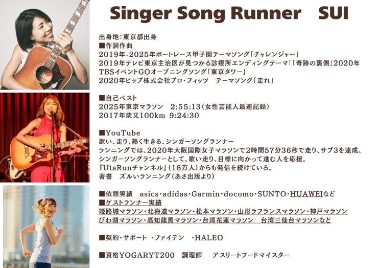 シンガーソングランナーとして、歌い走り目標に向かって進む人を応援し続けている「SUI」さんをゲストにお迎えし、ASICSの注目の最新作[MAGIC SPEED 5]を発売前にどんなシューズか「聞いて」「はいて」実際に走れるイベントです。