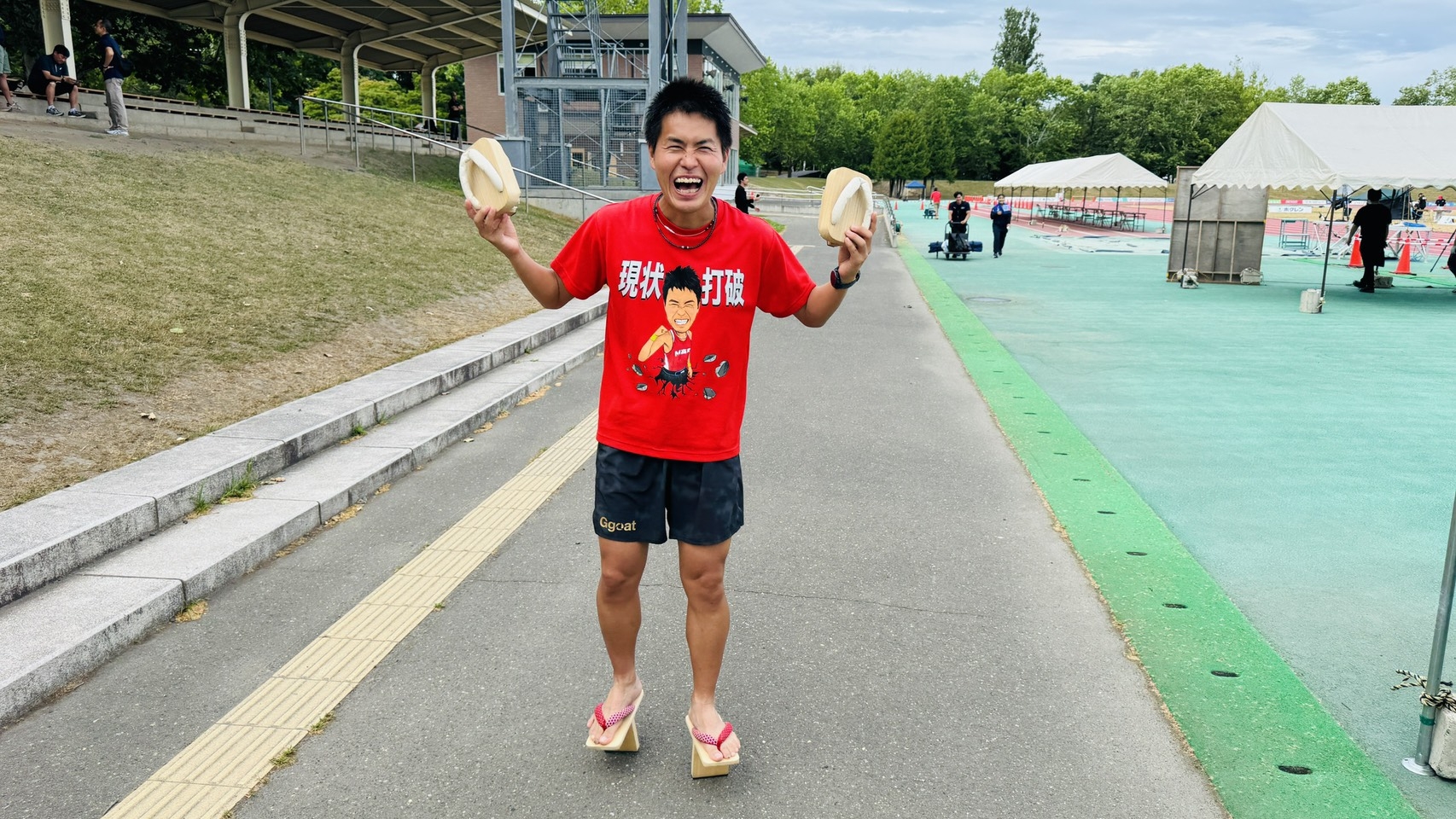 ☆下駄で感覚をつかんだあとに、競技場を走って動き、フォームを確認していきましょう!