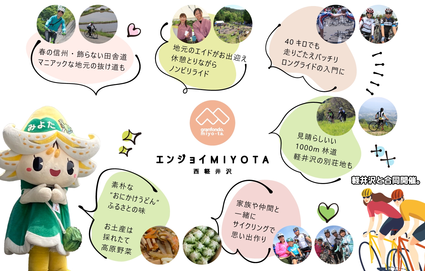 「グランフォンドMIYOTA」は、浅間山を囲む市町村が賛同・参画するサイクリング・プロジェクト「サイクリング・フェスティバルASAMA」の一員として開催。