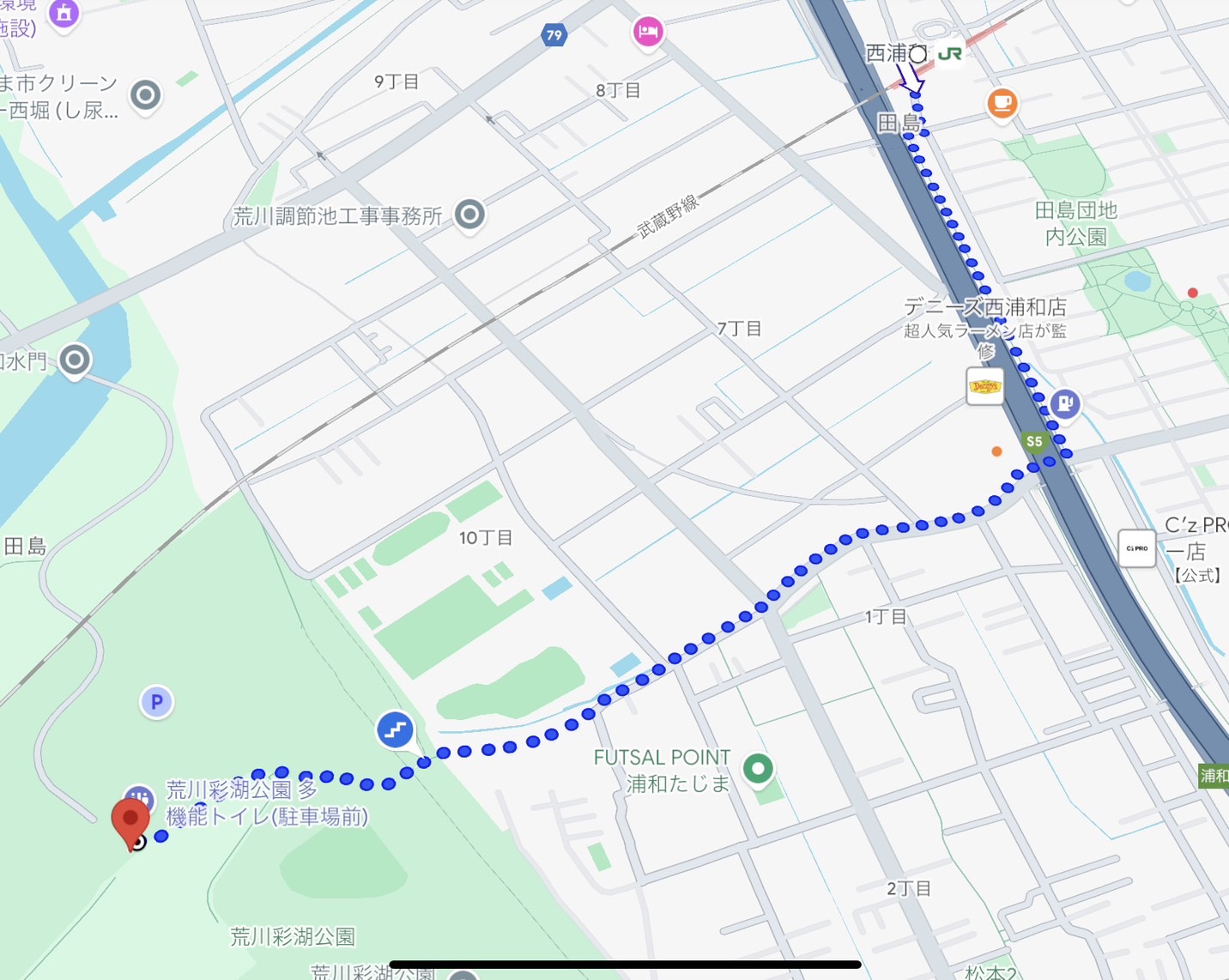 Googleマップで「荒川彩湖多機能トイレ」でルートを検索できます。
