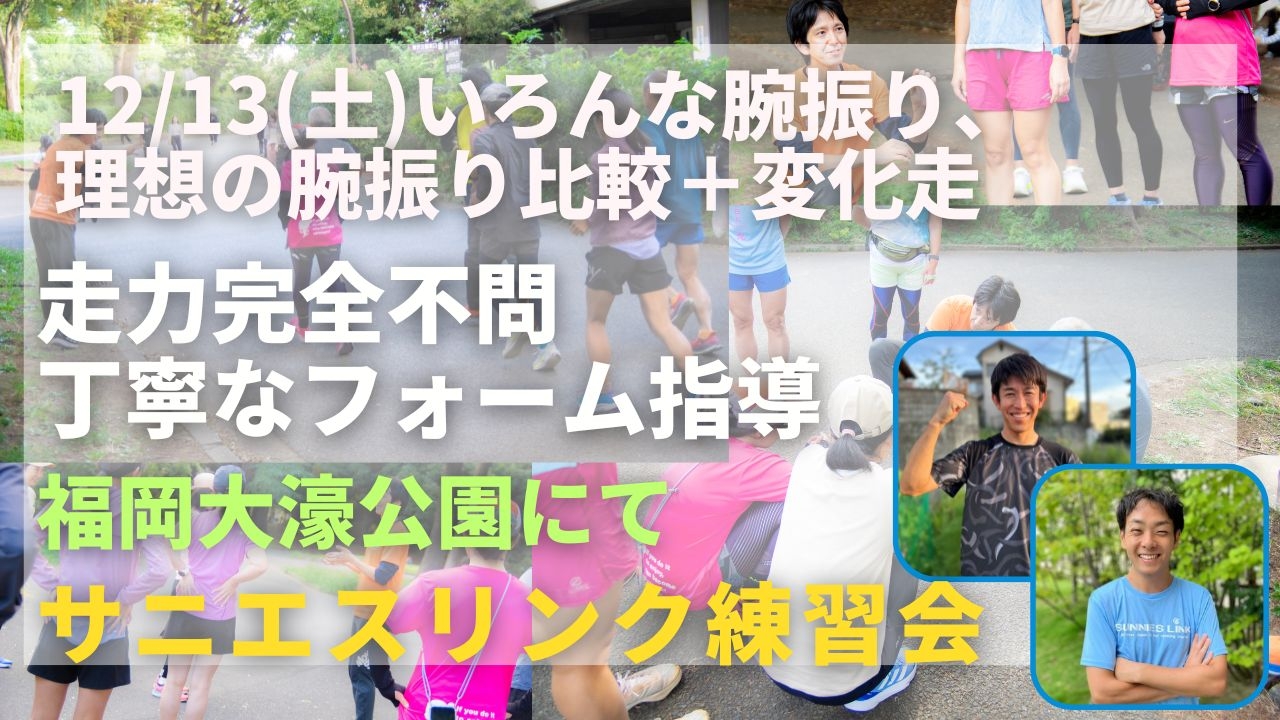 関東ですでに実績のある走力完全不問のランニングクラブ、サニエスリンクです。安心の練習システム、身体の仕組みをうまく使った専門的なストレッチやエクササイズ、丁寧なフォーム指導に定評があります。今まで関東エリアをメインに練習会を運営していましたが、2025年9月より、福岡市大濠公園でも練習会を新規スタートしました!ぜひご参加ください!