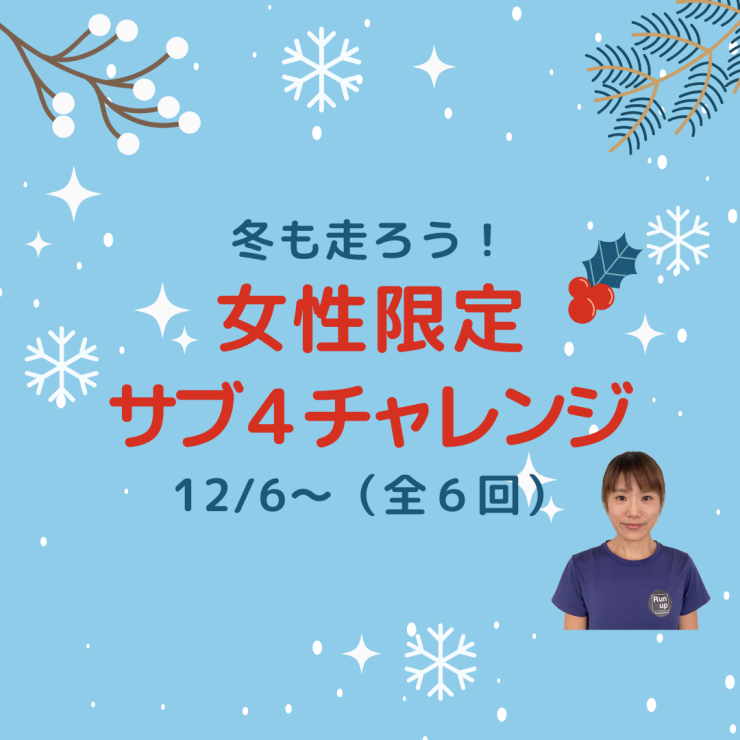 | 第2回 | 12/20 | ペース感覚をつかむ | 5km×2本(Mペース5'20〜5’30/km)+補強トレ |