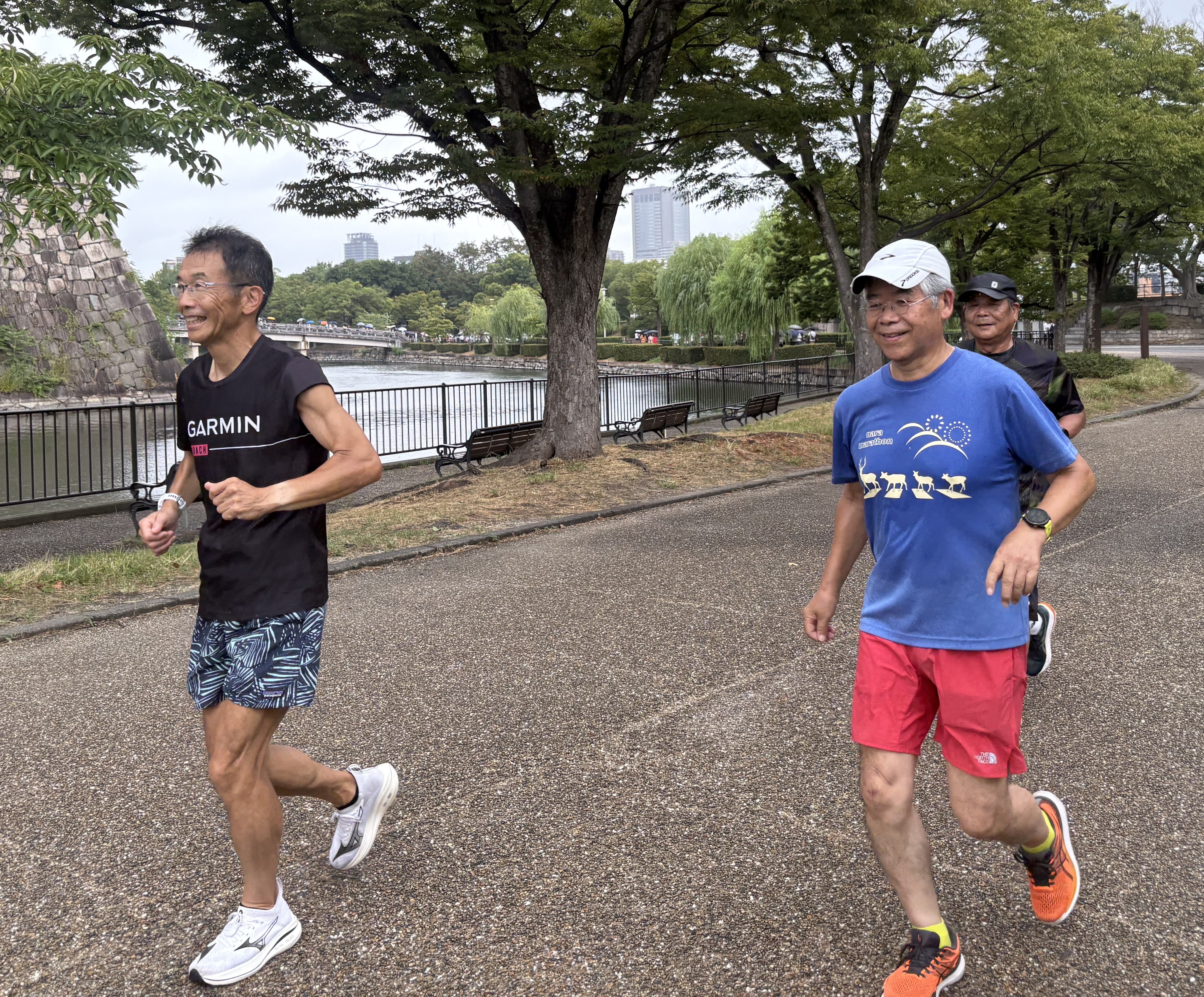 ・ゆっくり走りで5分ほどの大阪城公園に移動します。